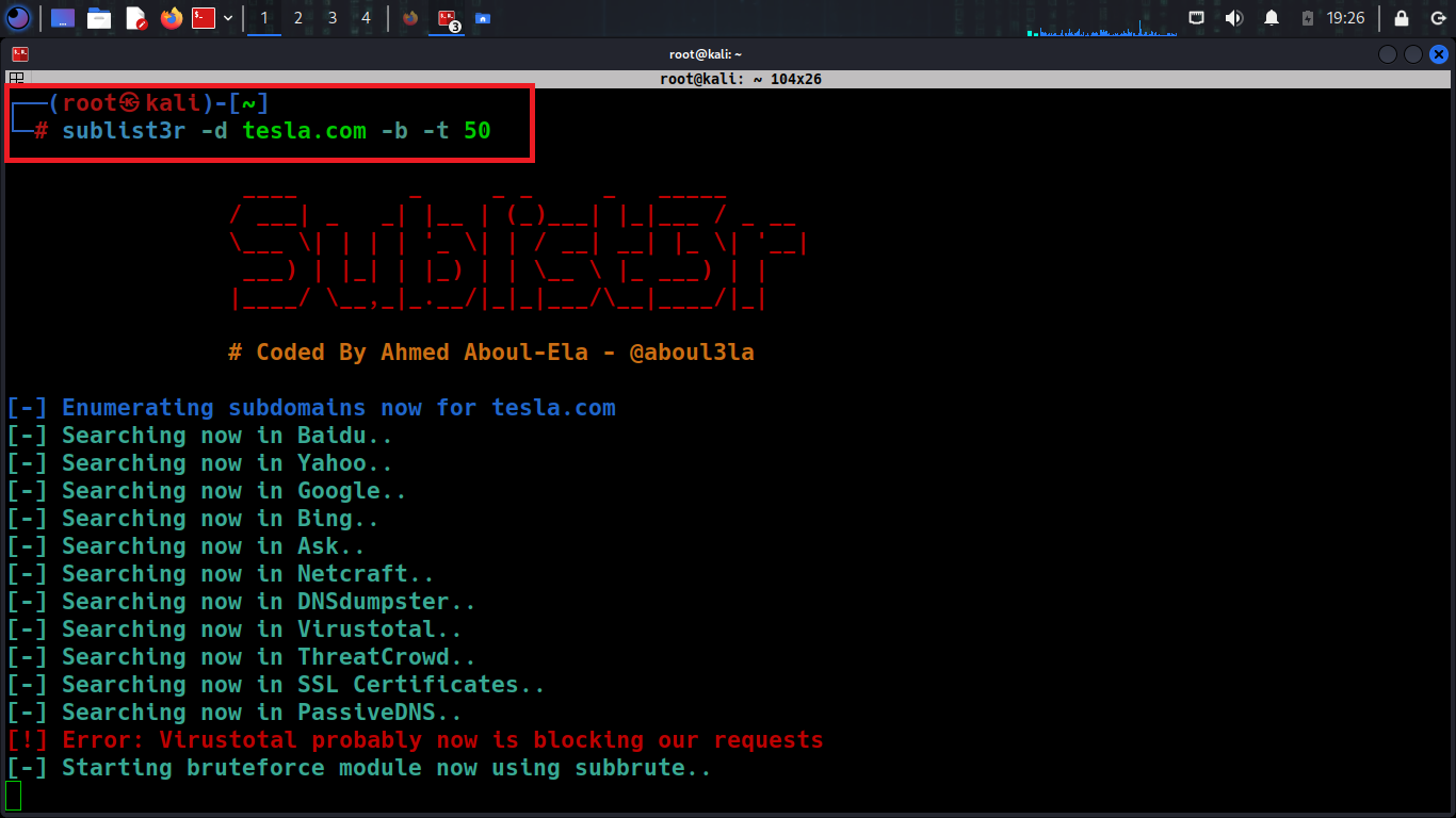Is a tool designed to enumerate subdomains of websites using OSINT techniques to help penetration testers and bug bounty hunters to collect and gather subdomains for the domain that are targeting? Using many search engines such as Yahoo, Bing, Google, Baidu, Ask, Netcraft, Virus Total, TheatCrowd, DNSdumpster and ReverseDNS, SSL Certificates. Also, it has brute force mode using an integrated tool named Subbrute.