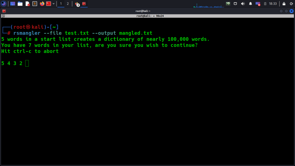 An example of using RSMangler to apply basic mangling rules to a wordlist: