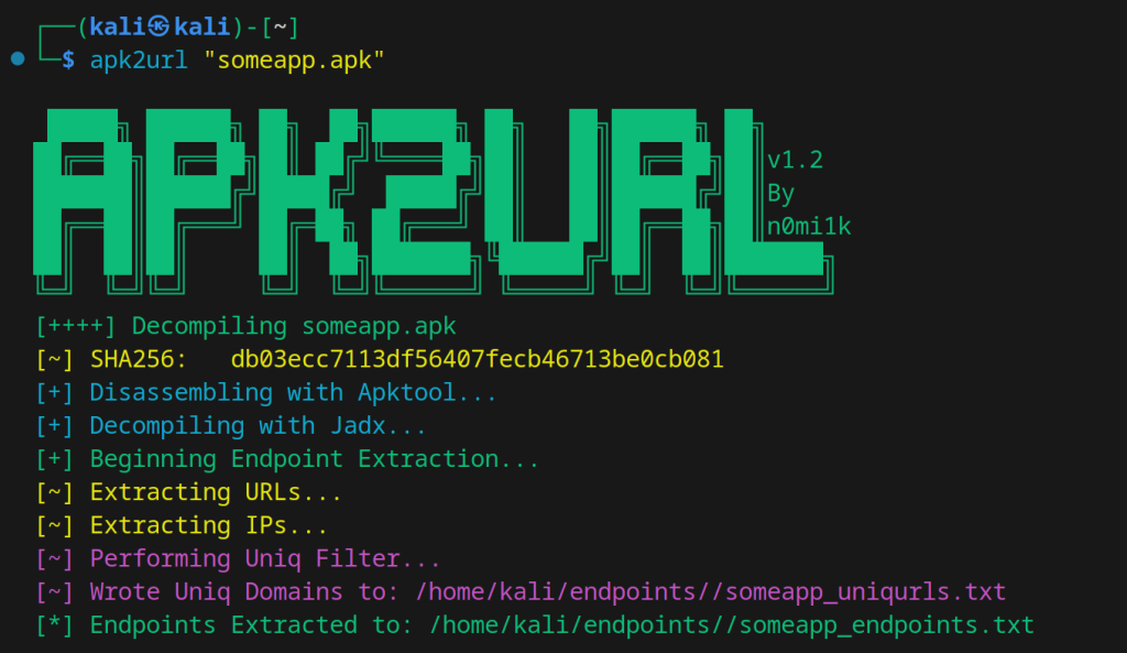 apk2url by n0mi1k is a tool that easily extracts URL and IP endpoints from an APK file and performs filtering into a .txt output. This is suitable for information gathering by the red team, penetration testers, and developers to quickly identify endpoints associated with an application.