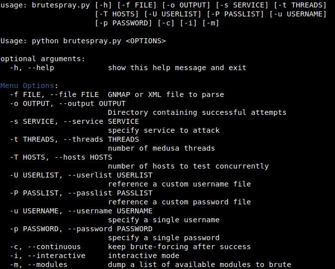 Command: python brutespray.py -h