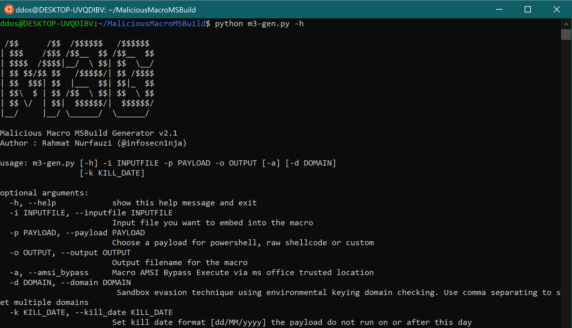 MaliciousMacroMSBuild should be used for authorized red teaming and/or nonprofit educational purposes only. Any misuse of this software will not be the responsibility of the author or of any other collaborator. Use it at your own networks and/or with the network owner’s permission.