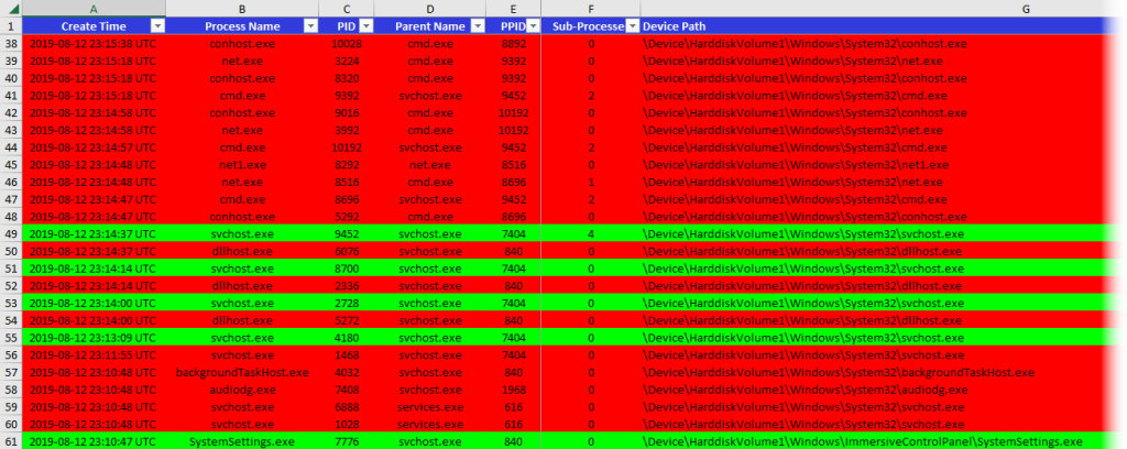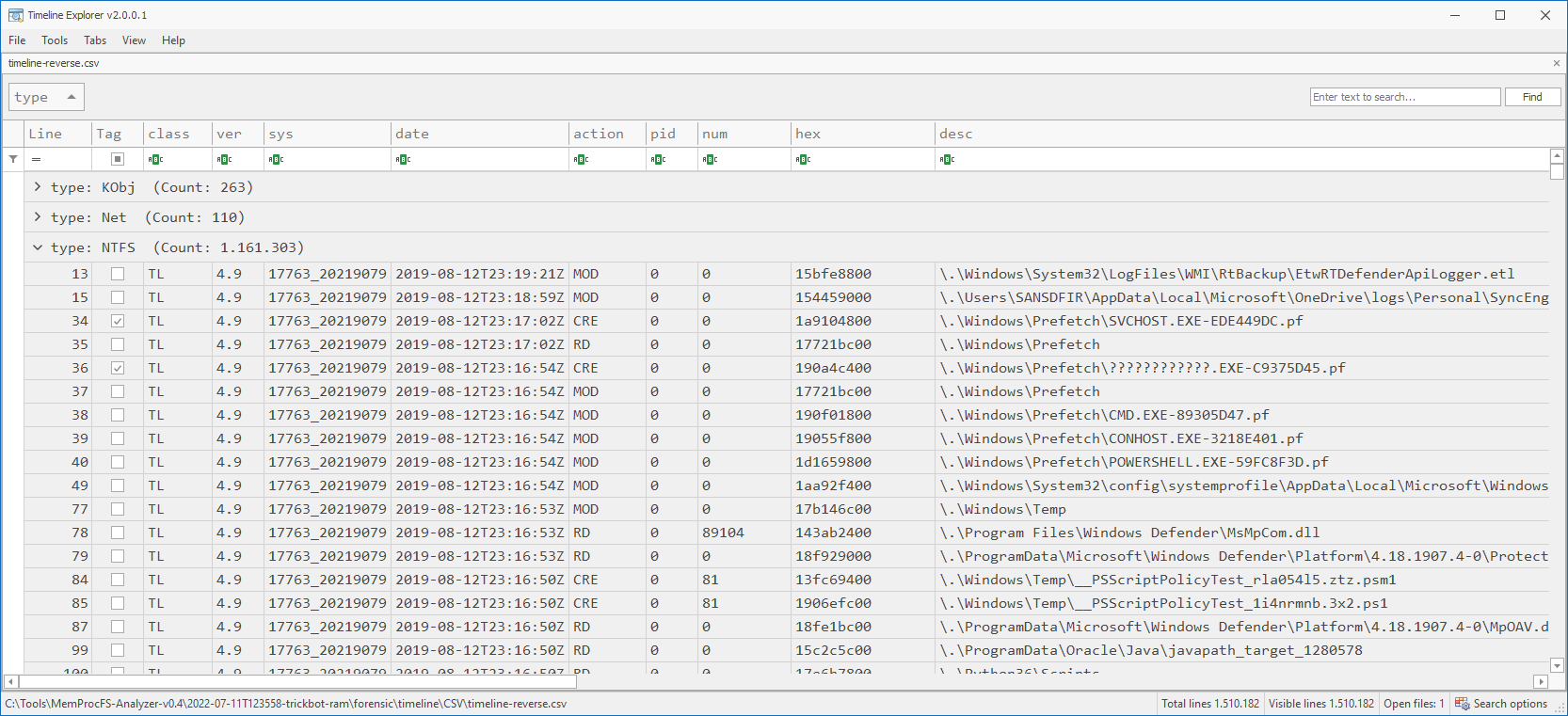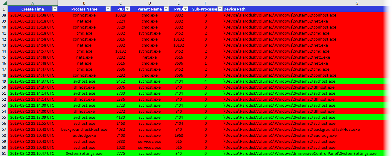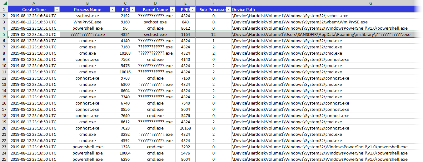 Fig 20: Analyze CSV output w/ Timeline Explorer (TLE)