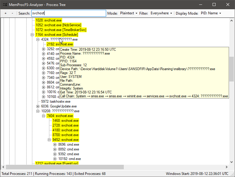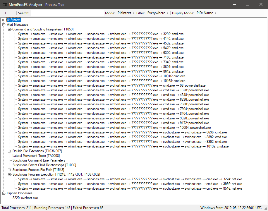 Fig 11: Checking Process Tree (to find anomalies)