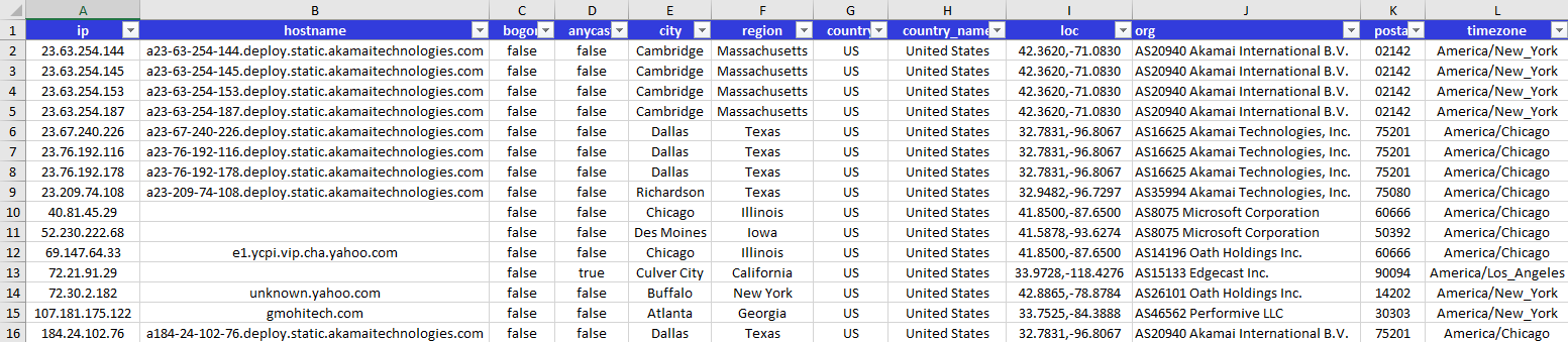 Fig 15: Map IPs w/ IPinfo.io