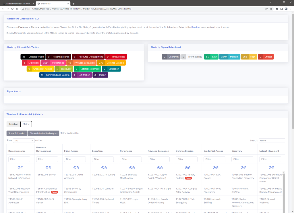 Fig 17: Zircolite – A standalone SIGMA-based detection tool for EVTX (Mini-GUI)