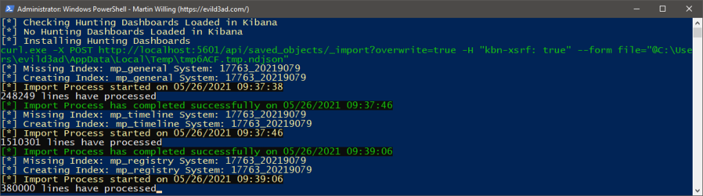 🟢Make sure to comment/uncomment (selectively enable or disable) the functions you want to play with (Elasticsearch and ELKImport are disabled by default). Check out the “Main” in the bottom of the script.