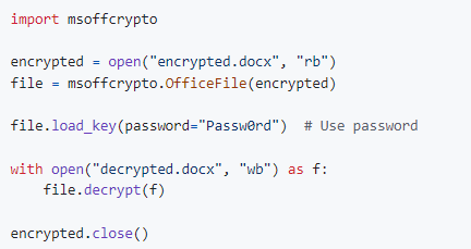 $ msoffcrypto-tool encrypted.docx decrypted.docx -p
