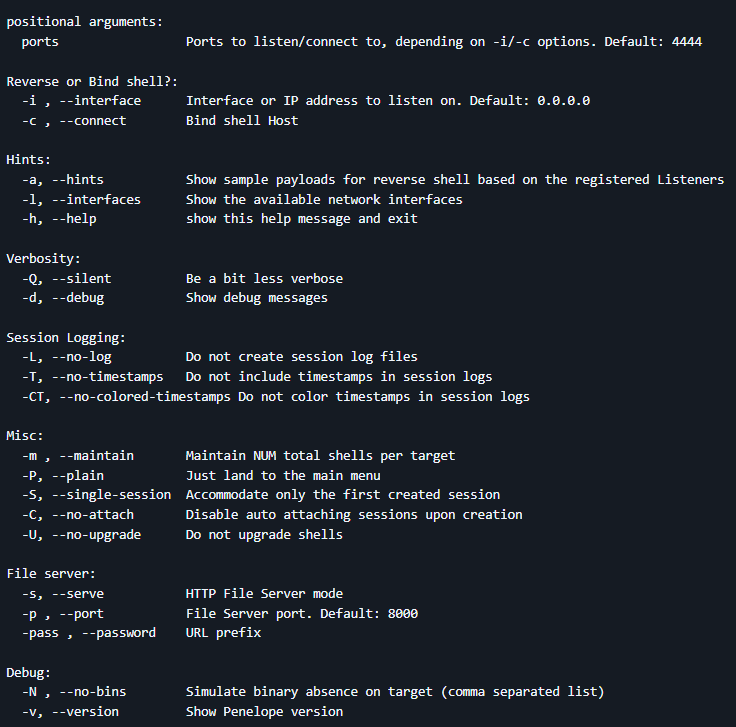 penelope 5555 -i eth0 # Listening for reverse shells on eth0:5555
