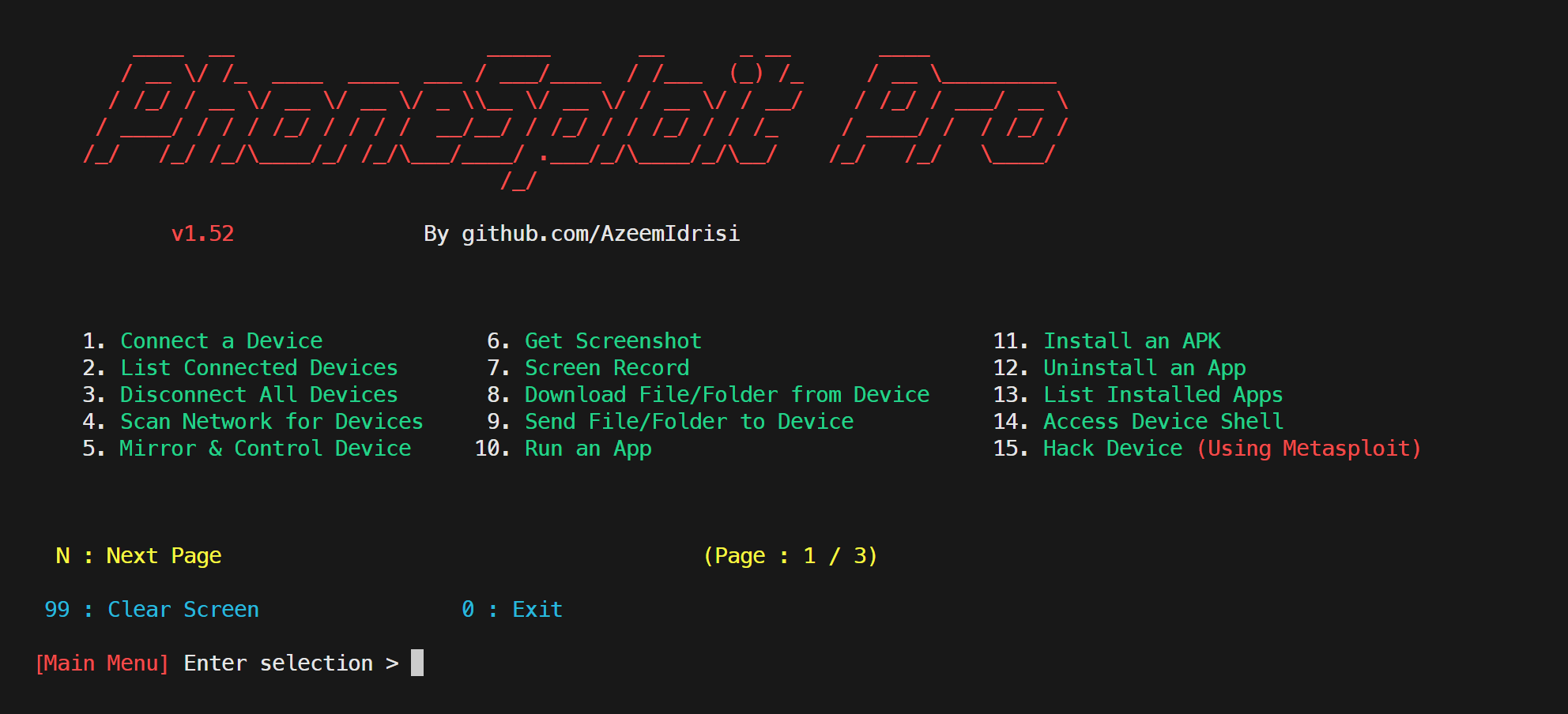 The goal of this project is to make penetration testing on Android devices easy. Now you don’t have to learn commands and arguments, PhoneSploit Pro does it for you. Using this tool, you can test the security of your Android devices easily.