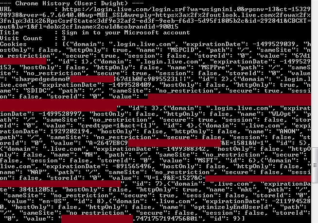 SharpChromium is a .NET 4.0+ CLR project to retrieve data from Google Chrome, Microsoft Edge, and Microsoft Edge Beta. Currently, it can extract: